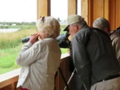 The complex includes a trail through a small woodlot into the Al Potvin observation tower that overlooks the north end of the lagoon. From there a trail runs 150 m east to the Mike McPhail Bird Viewing Shelter that overlooks the east side of the lagoon. During the spring and fall, the lagoon features many hundreds of duck and other migrating shore birds resting and feeding.