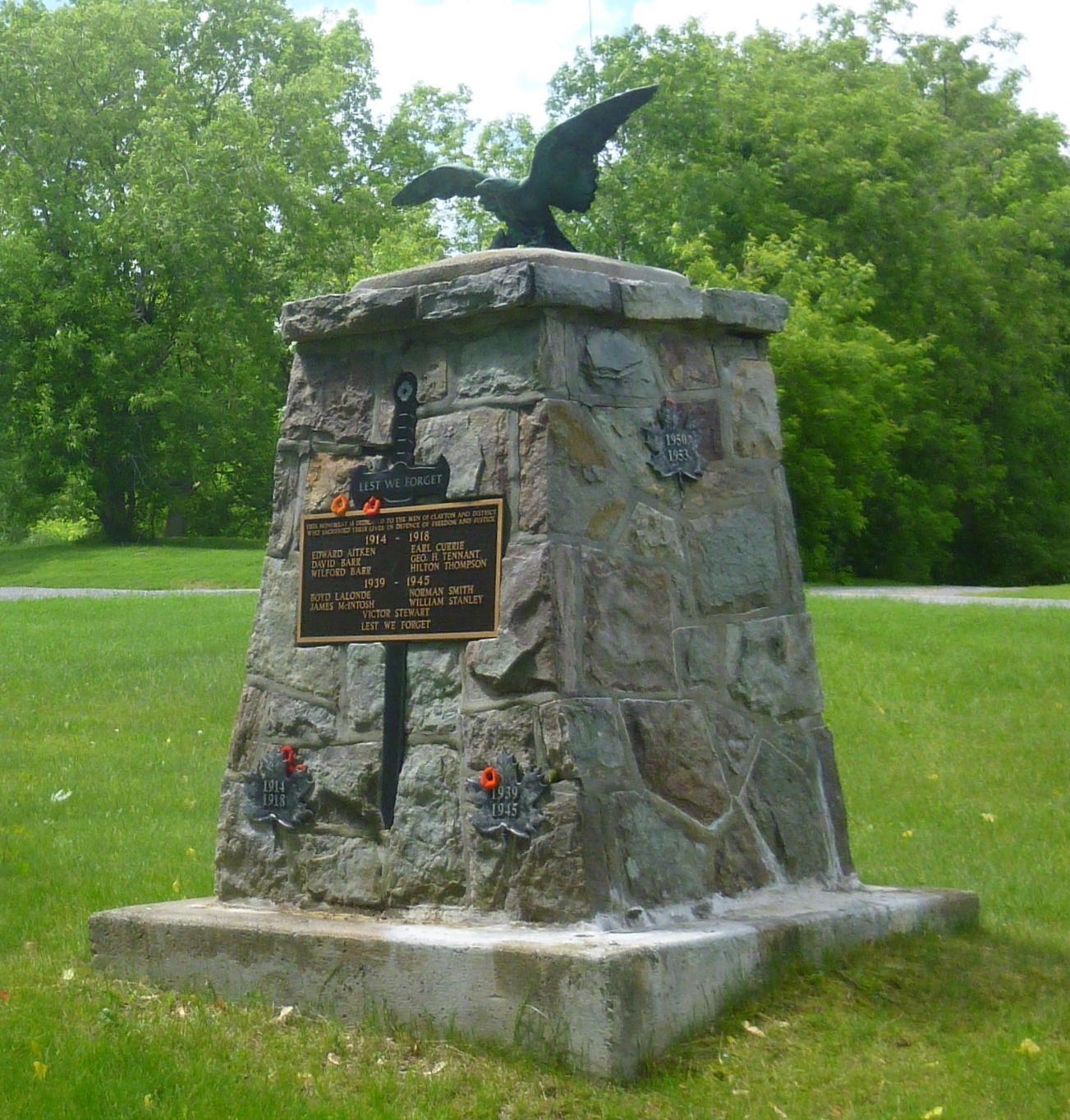 The Clayton Cenotaph was built in 1997/1998 to honour the fallen heroes from the Clayton area. It was built with the support of the Almonte Legion and the seniors of Linn Bower in Clayton.